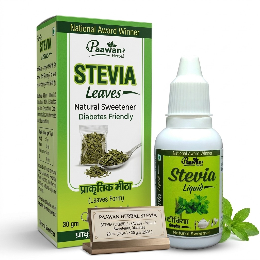 Paawan Herbal Stevia is a 100% natural, zero-calorie sweetener extracted from the Stevia plant. It is the perfect sugar alternative for people who want to manage blood sugar levels, reduce calorie intake, and adopt a healthier lifestyle. With no chemicals, no artificial additives, and no side effects, Stevia is ideal for diabetics, fitness lovers, and anyone following a weight-loss or sugar-free diet.